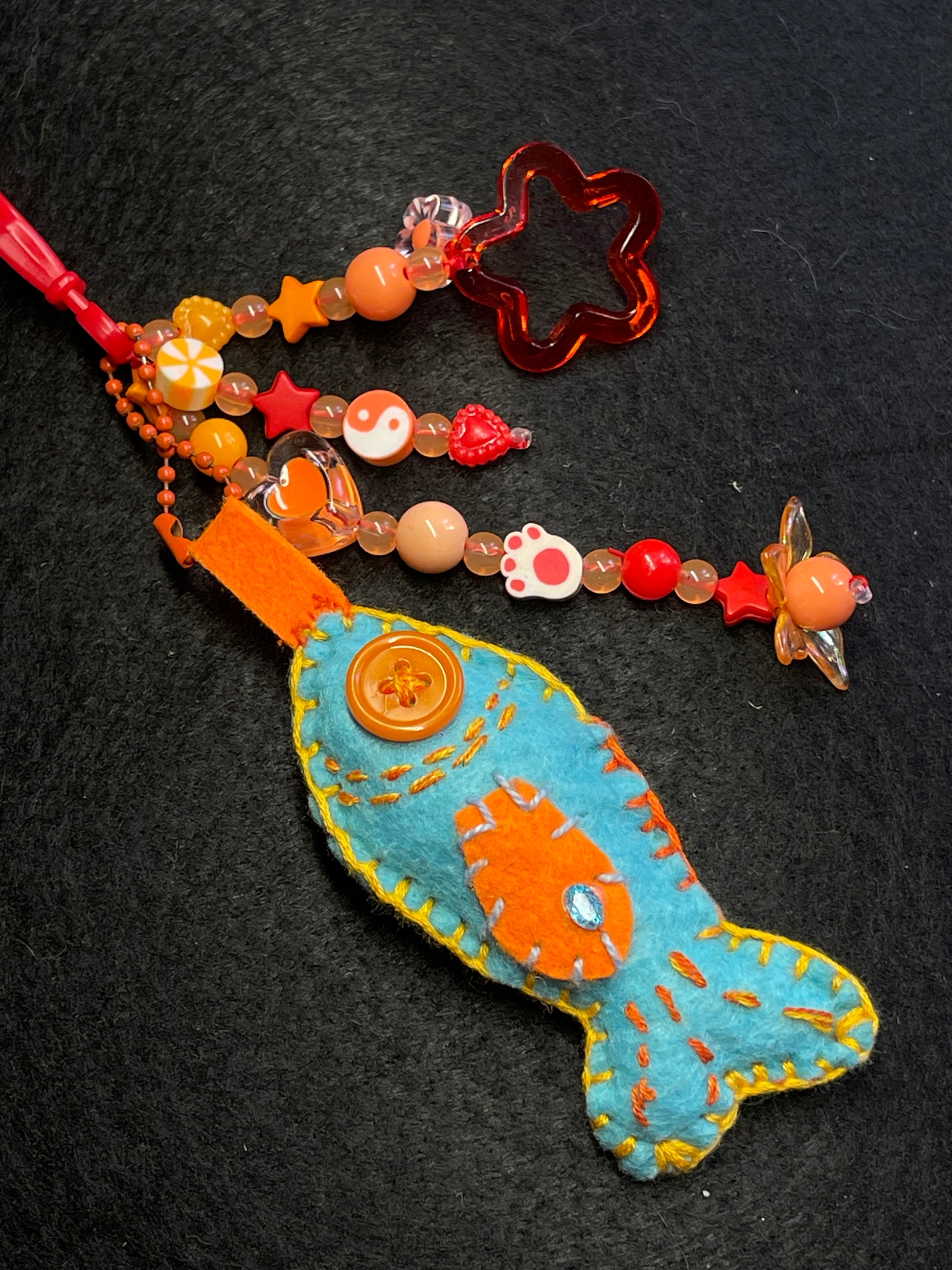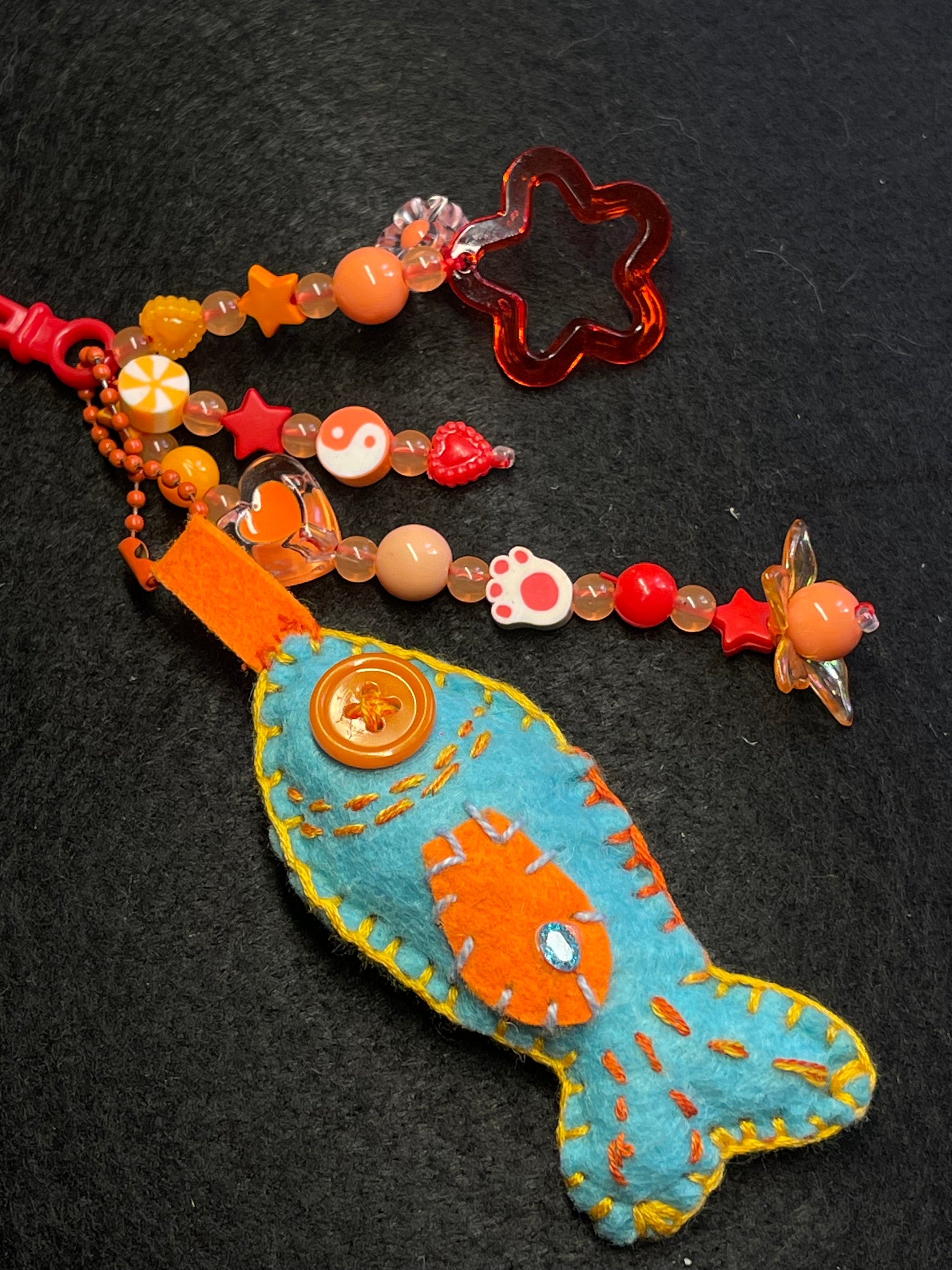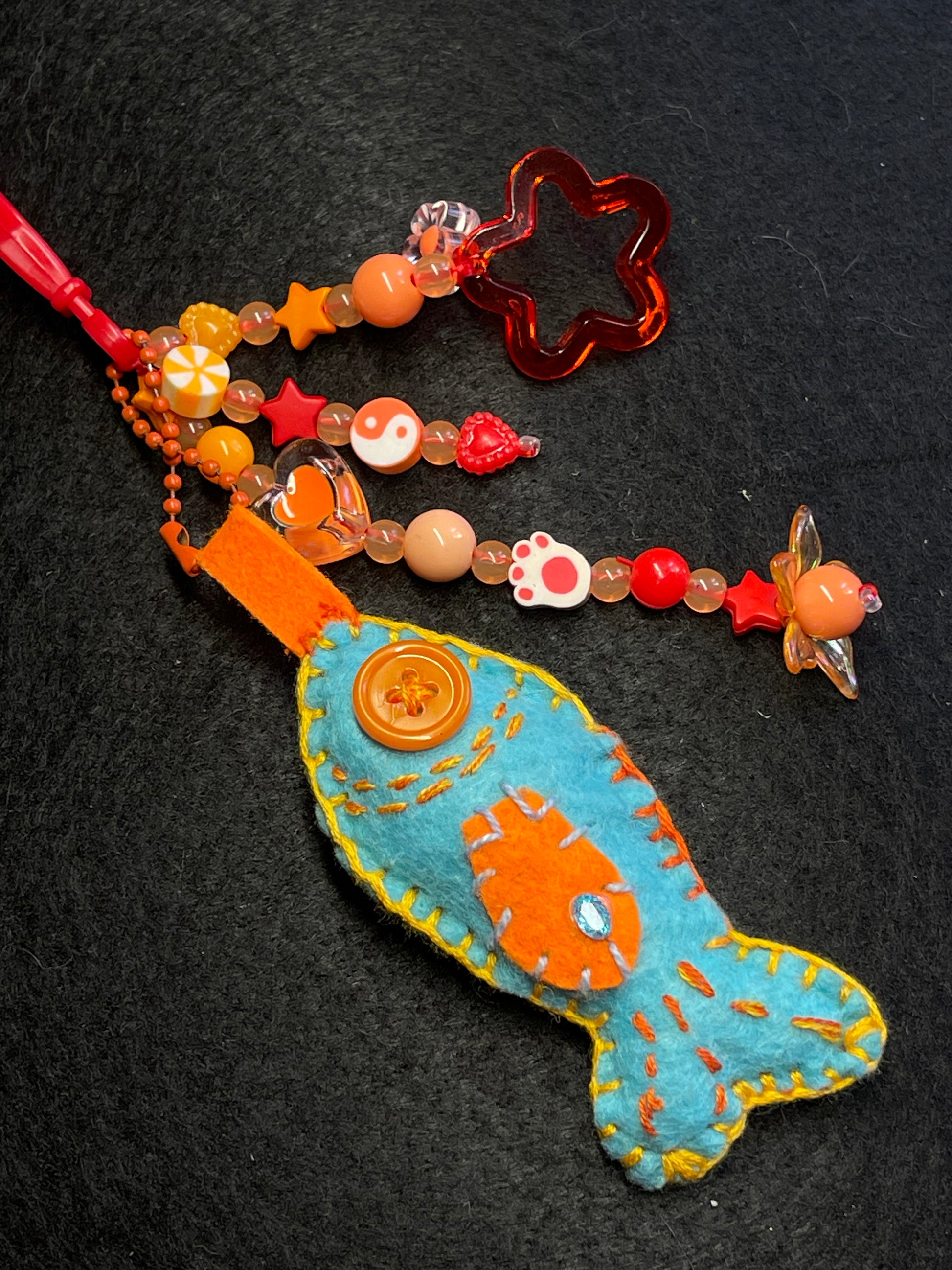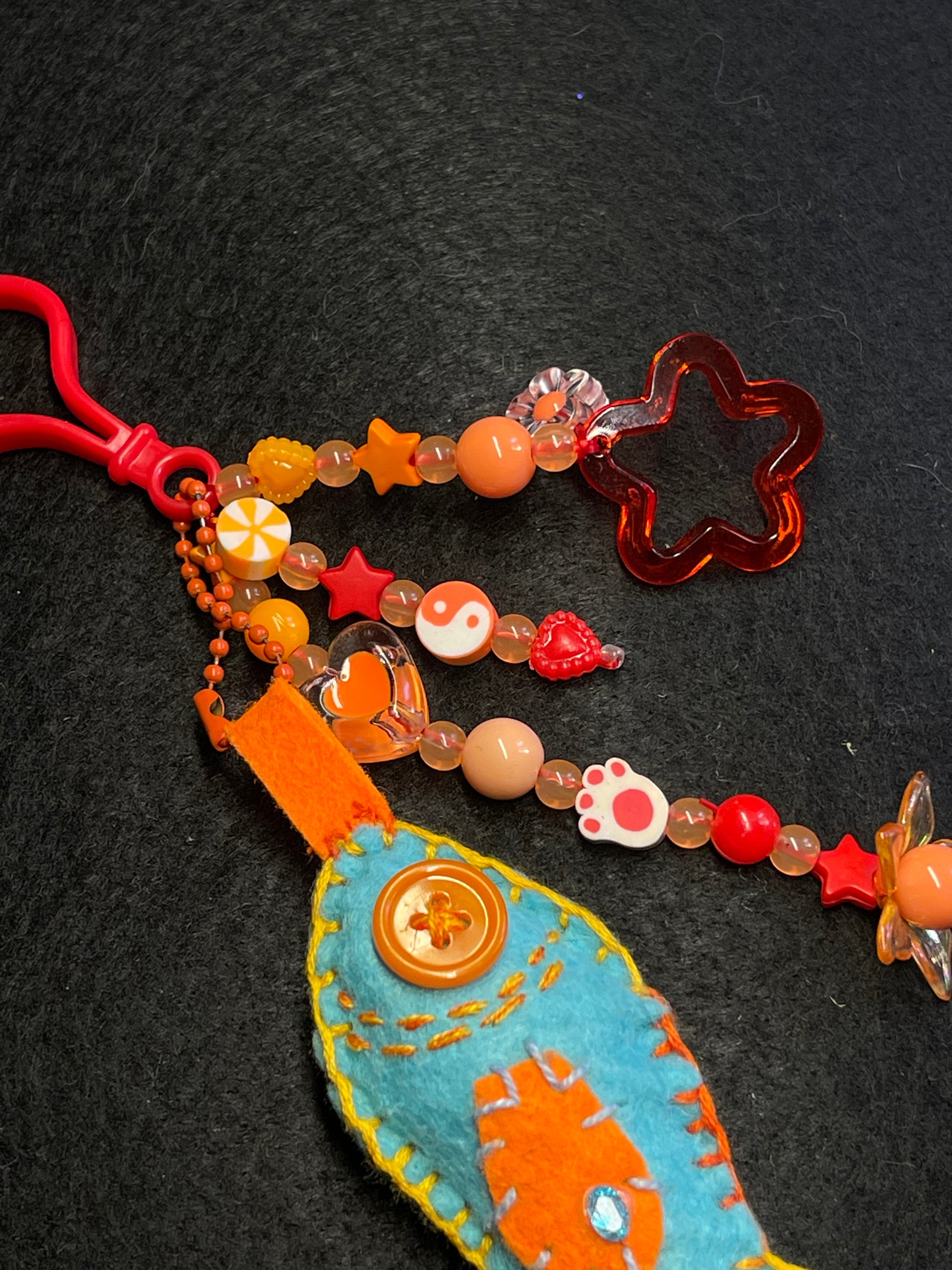 Hilo elástico y abalorios acrílicos, llavero de gancho.