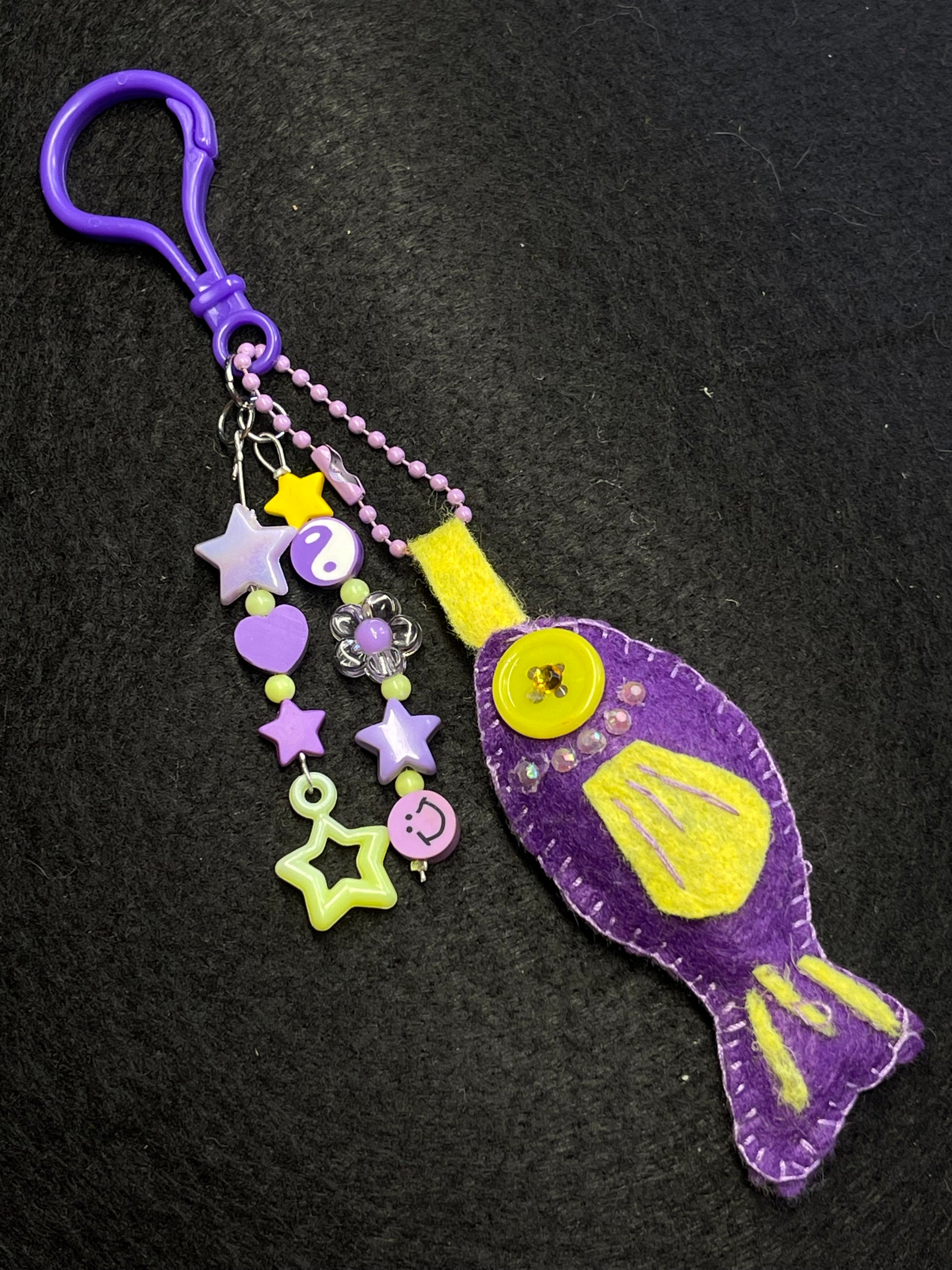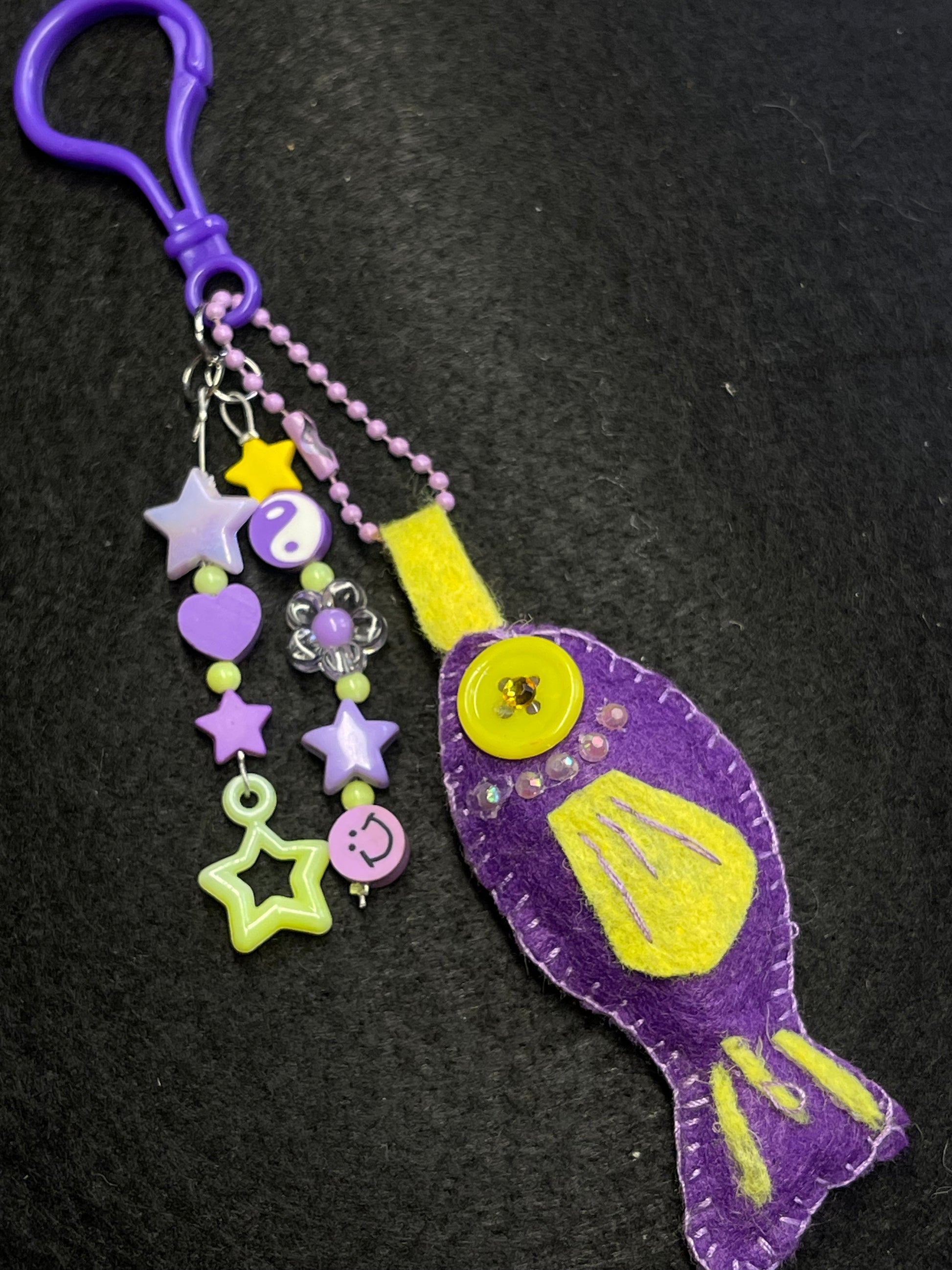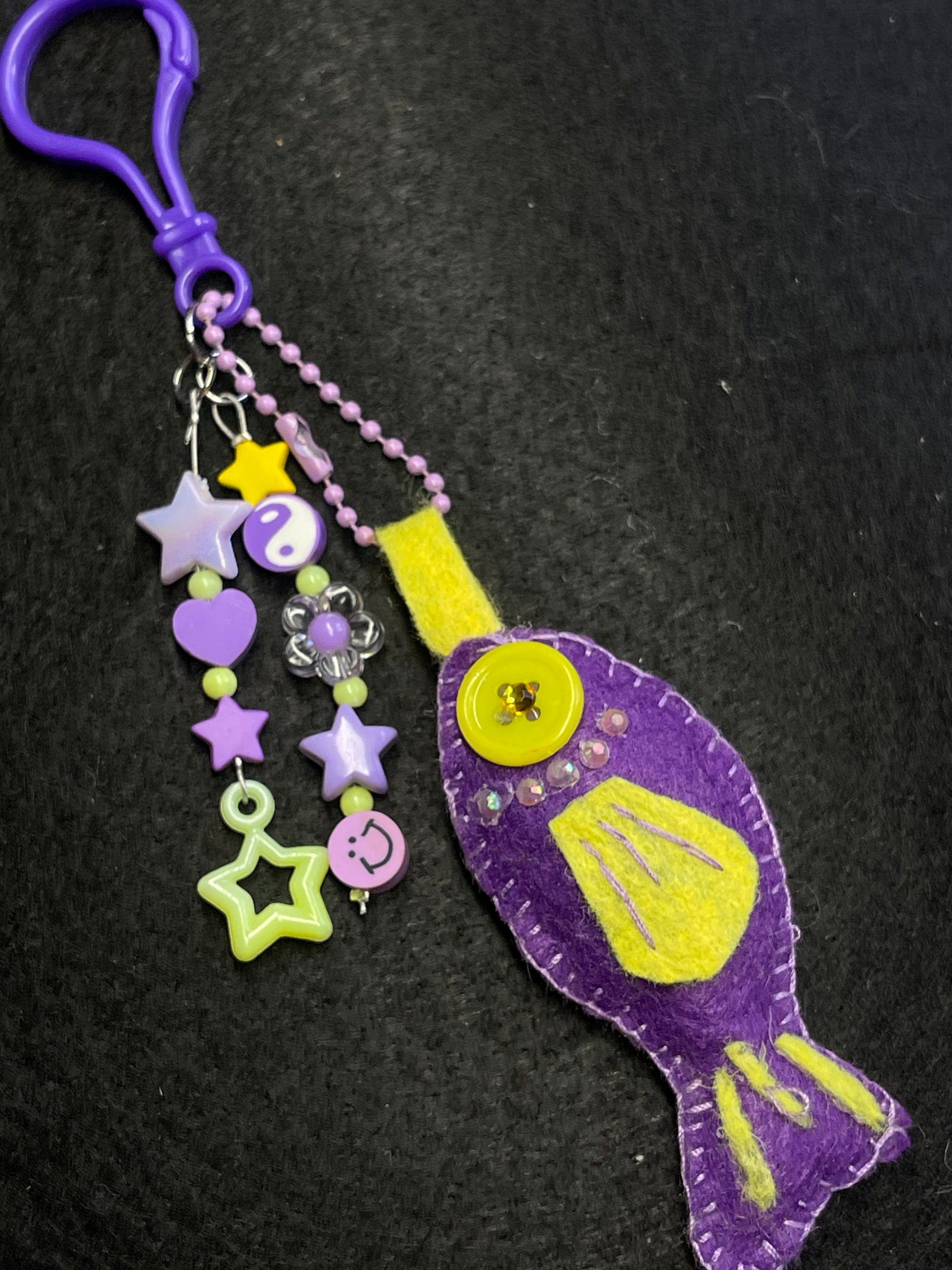 Alambre de joyería y abalorios acrílicos, llavero de gancho.