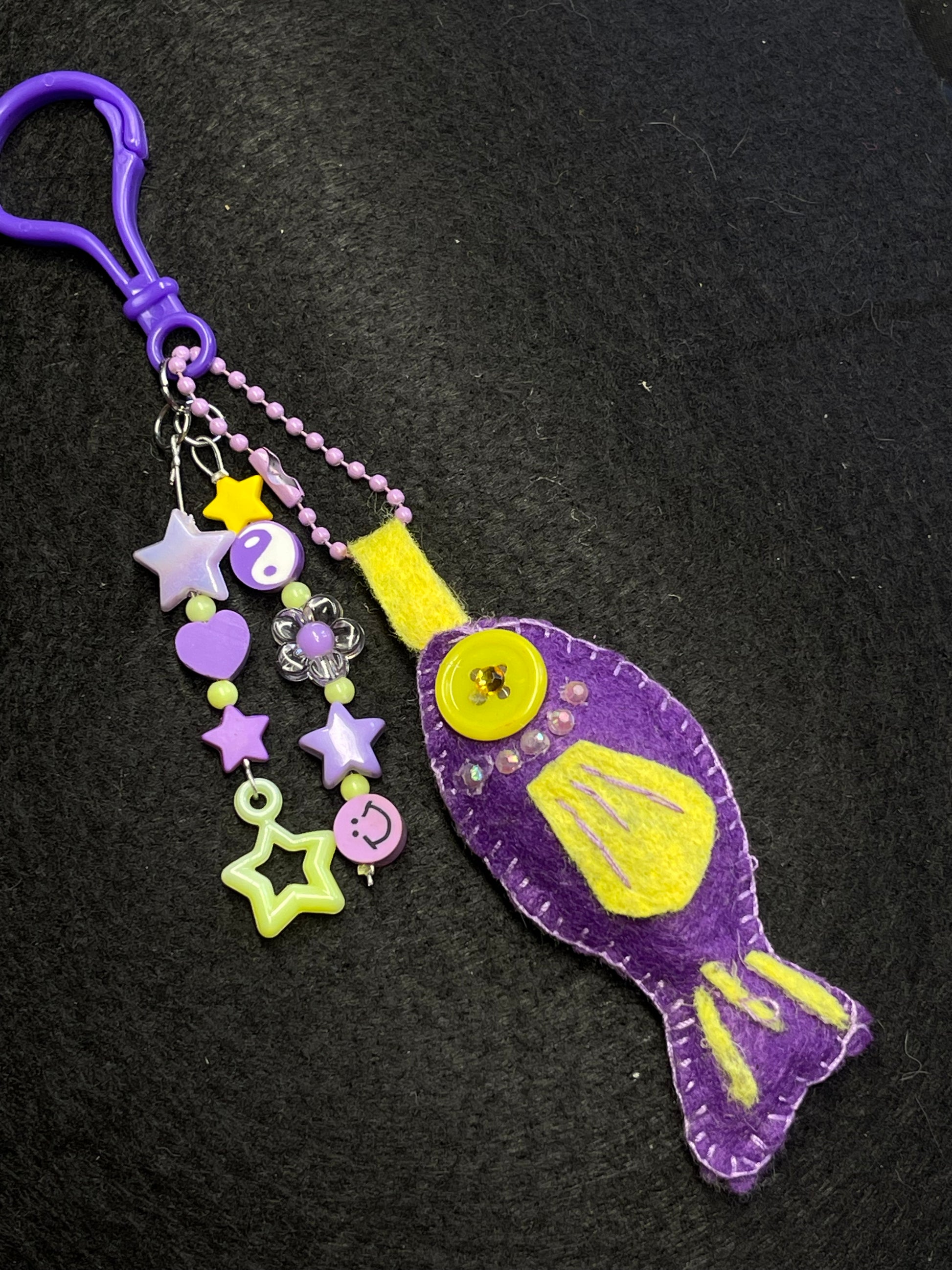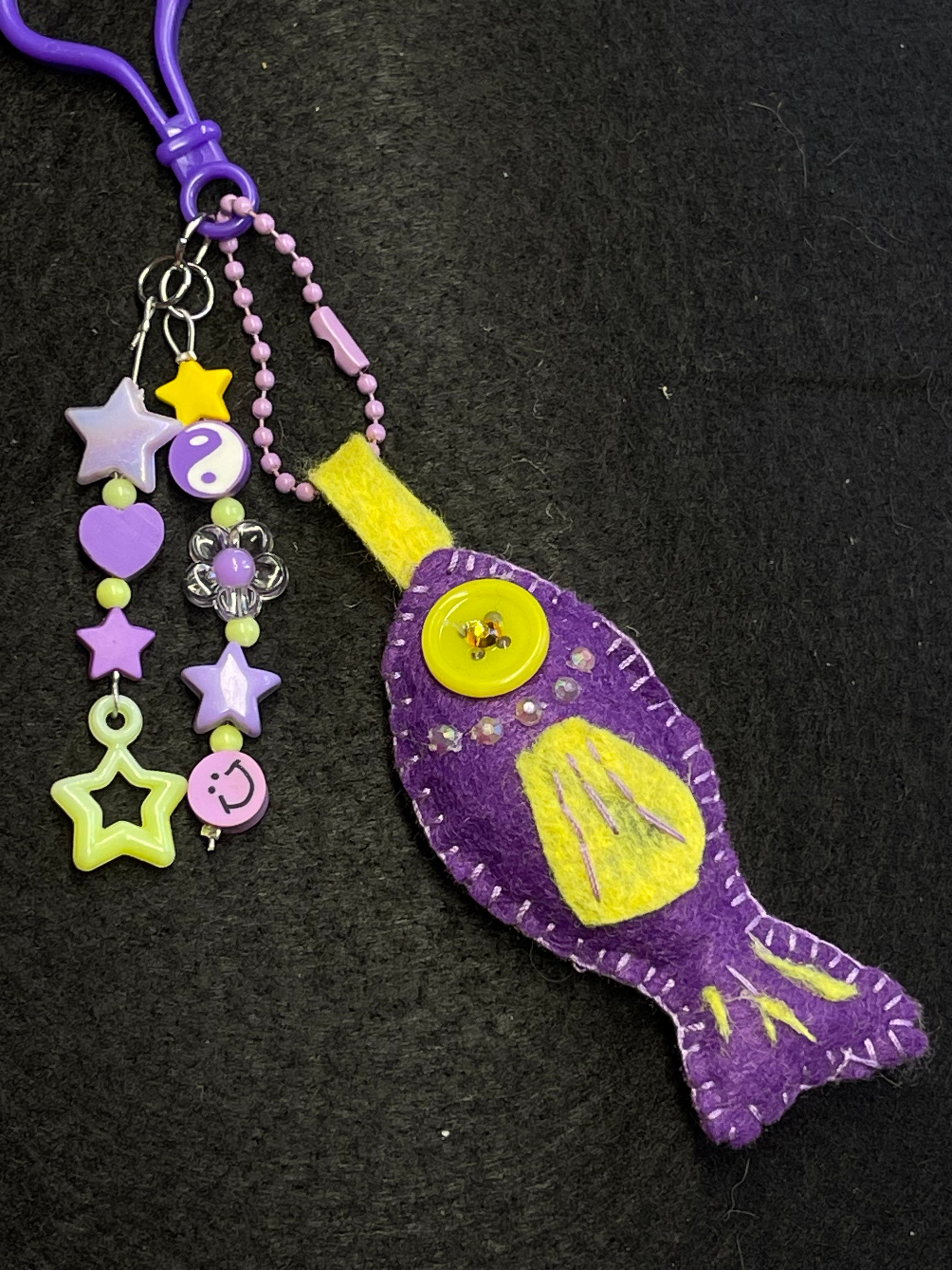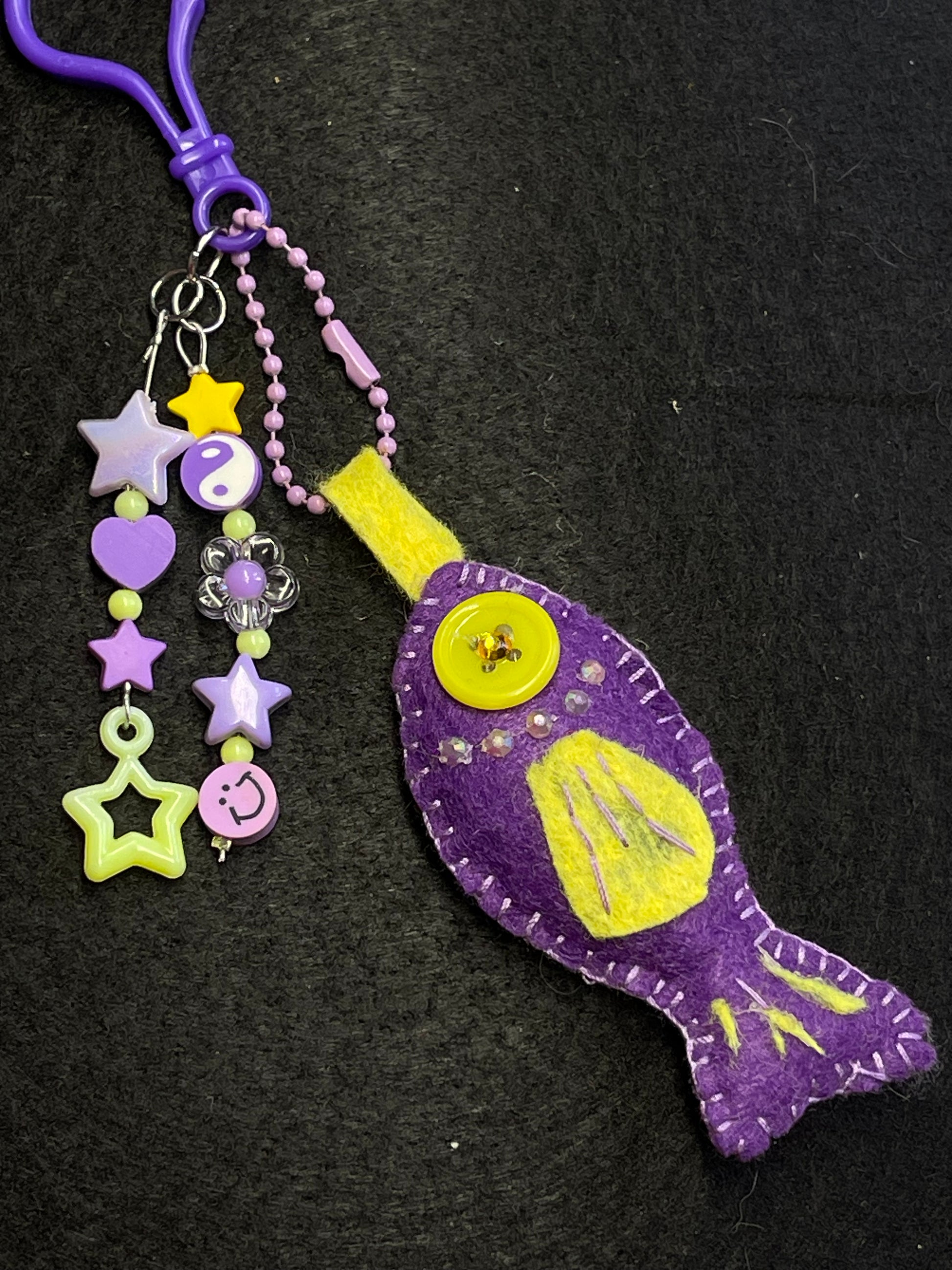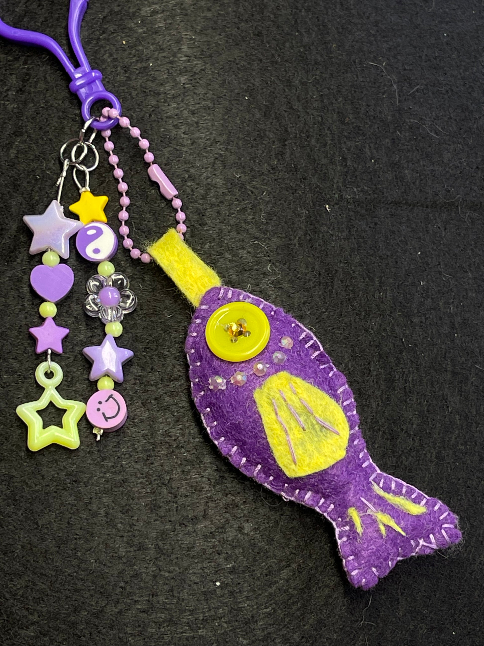 Alambre de joyería y abalorios acrílicos, llavero de gancho.